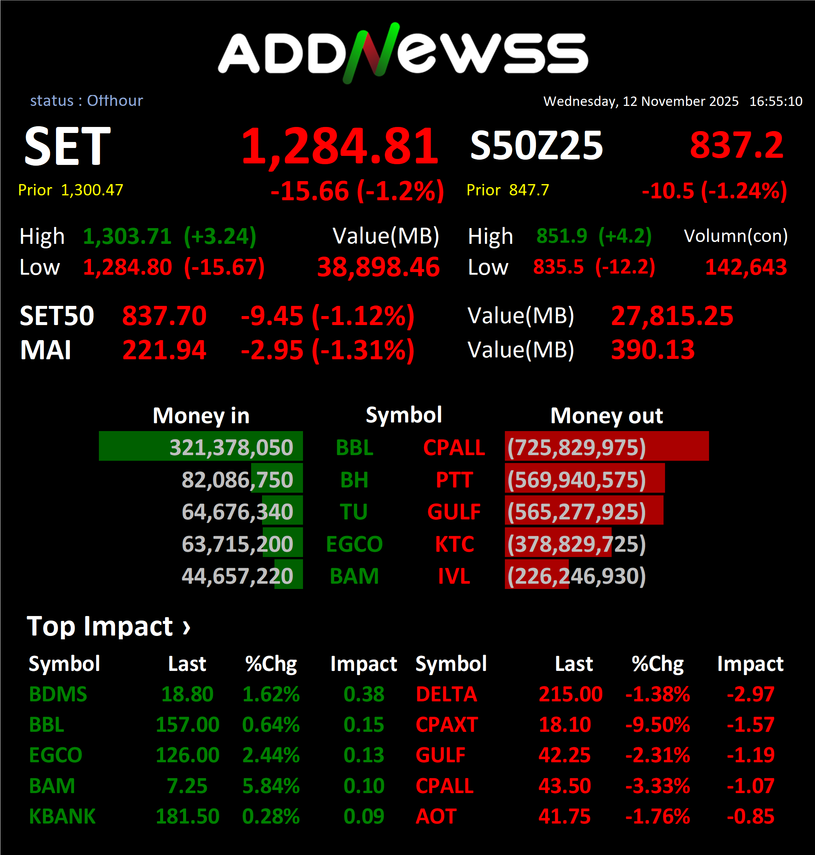 ADVANC : 🔻-1.00 ฿2,100,654,500