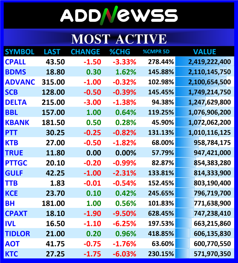 CPALL : 🔻-1.50 ฿2,419,222,400