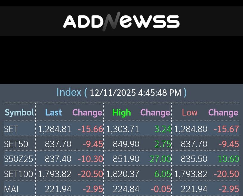 📊เย็นวันนี้ดัชนีตลาดหุ้นไทยปิดที่ 1,284.81 ลดลง -15.66 จุด หรือ -15.66%