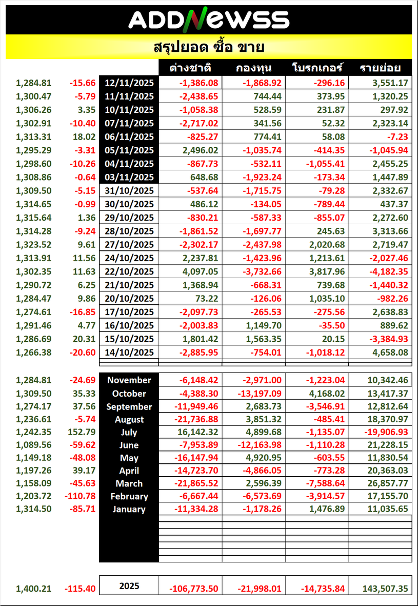 🔥🔥สรุปยอด ซื้อ ขาย🟢 🔴 12/11/2025
