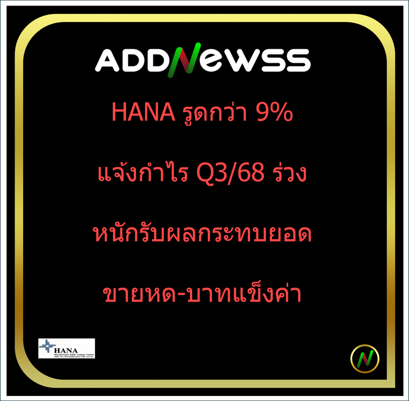 ขณะที่ HANA ชี้แจงผลประกอบการไตรมาส 3/68 มีกำไรสุทธิ 15 ล้านบาท ลดลงจาก 406 ล้านบาทในไตรมาส 3/67 หรือ ลดลง 96.3% เนื่องจากยอดขายลดลงและอัตราแลกเปลี่ยนแข็งค่าขึ้น 7% เมื่อเทียบกับช่วงเดียวกันของปีก่อน รวมถึงมีรายการพิเศษ(exceptional gain) ในไตรมาส 3/67