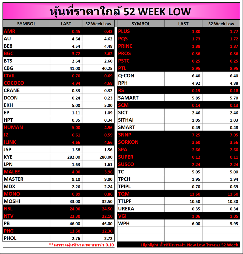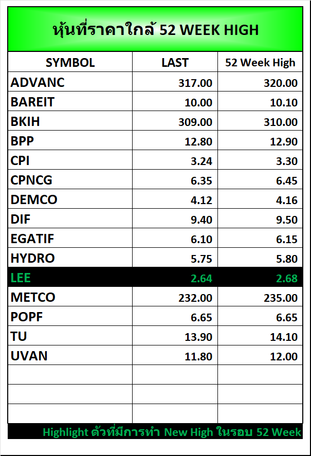 ⭐หุ้นที่ราคาใกล้ 52 Week 🟢High 🔴Low 📅13/11/2025