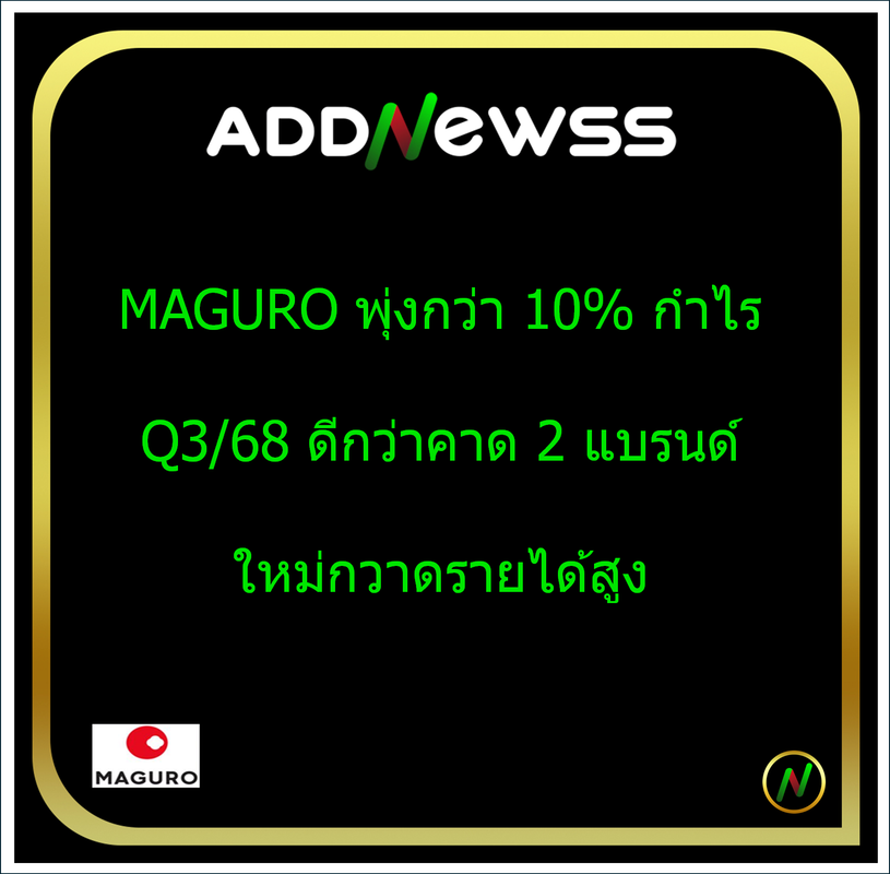 IQ > HILITE: MAGURO พุ่งกว่า 10% กำไร Q3/68 ดีกว่าคาด 2 แบรนด์ใหม่กวาดรายได้สูง แนวโน้ม Q4/68 เข้าไฮซีซั่น