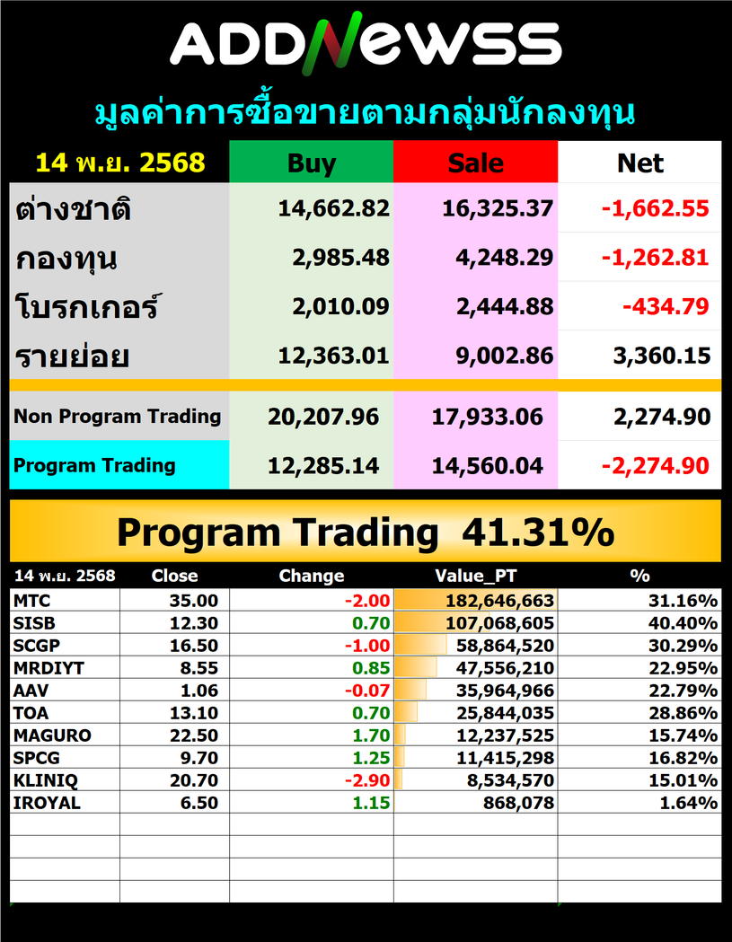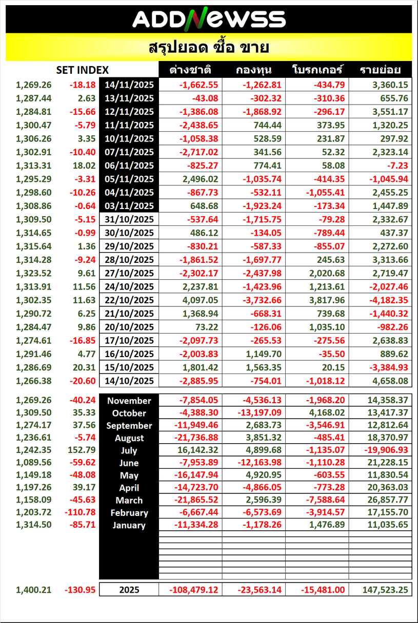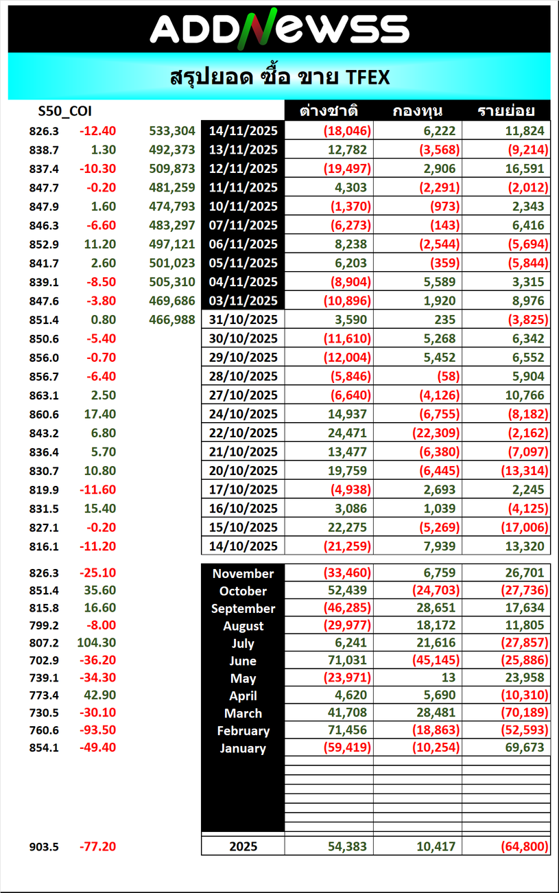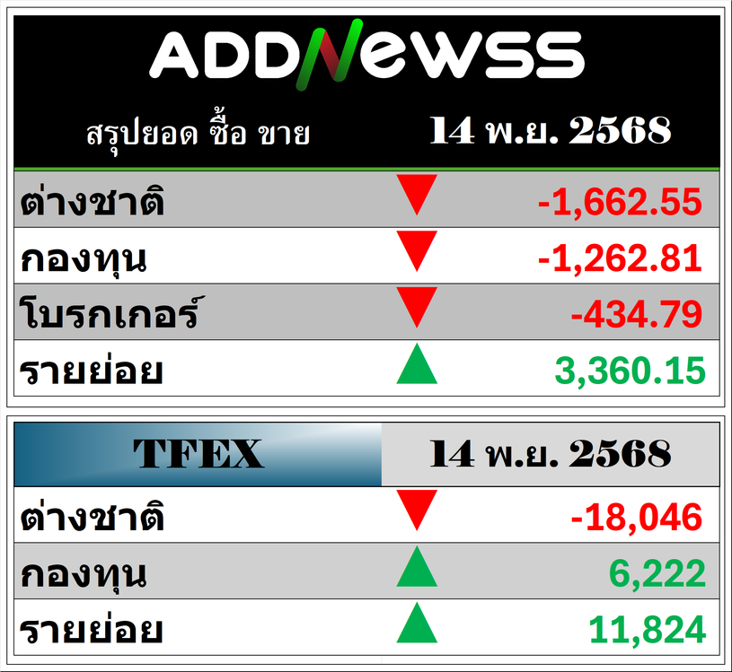 🔥🔥สรุปยอด ซื้อ ขาย🟢 🔴 14/11/2025