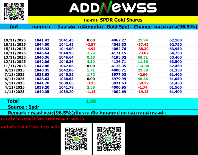 ยอดสะสม Spdr ย้อนหลังประจำเดือนตุลาคม 2025