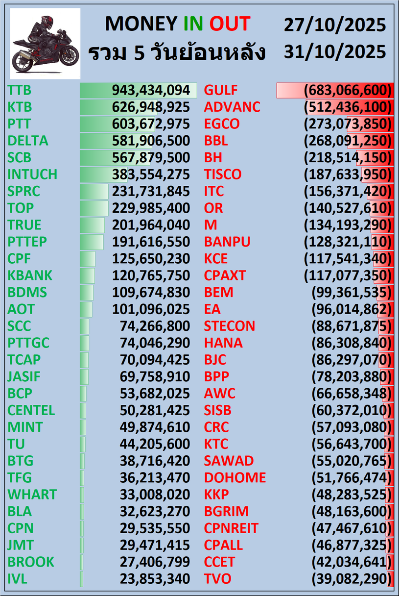 💸MONEY 🟢IN 🔴OUT 1 , 5 , 10 วันย้อนหลัง