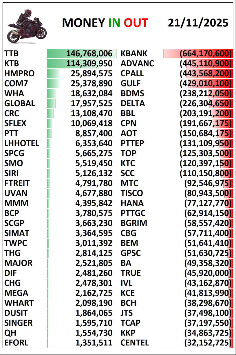 💸MONEY 🟢IN 🔴OUT 1 , 5 , 10 วันย้อนหลัง 21/11/2025