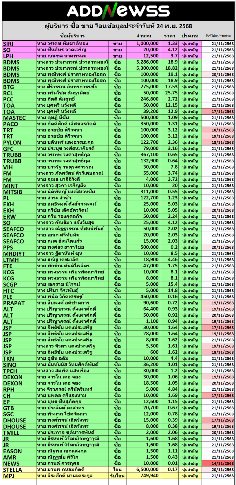 🔥🔥สรุปผู้บริหาร ซื้อ ขาย โอน