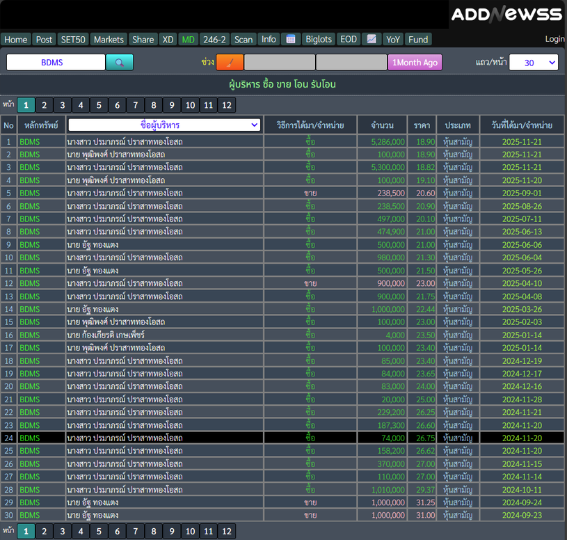ปรมาภรณ์ ปราสาททองโอสถ 🟢ซื้อ BDMS 10,586,000 หุ้น