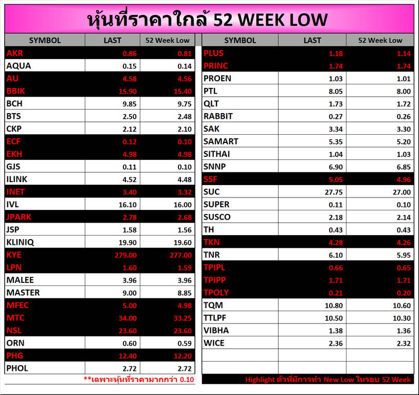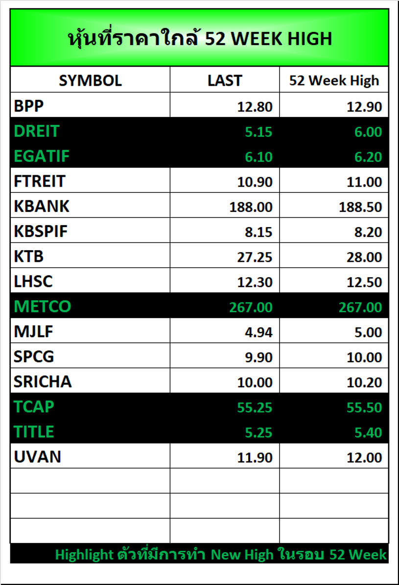 ⭐หุ้นที่ราคาใกล้ 52 Week 🟢High 🔴Low 📅24/11/2025