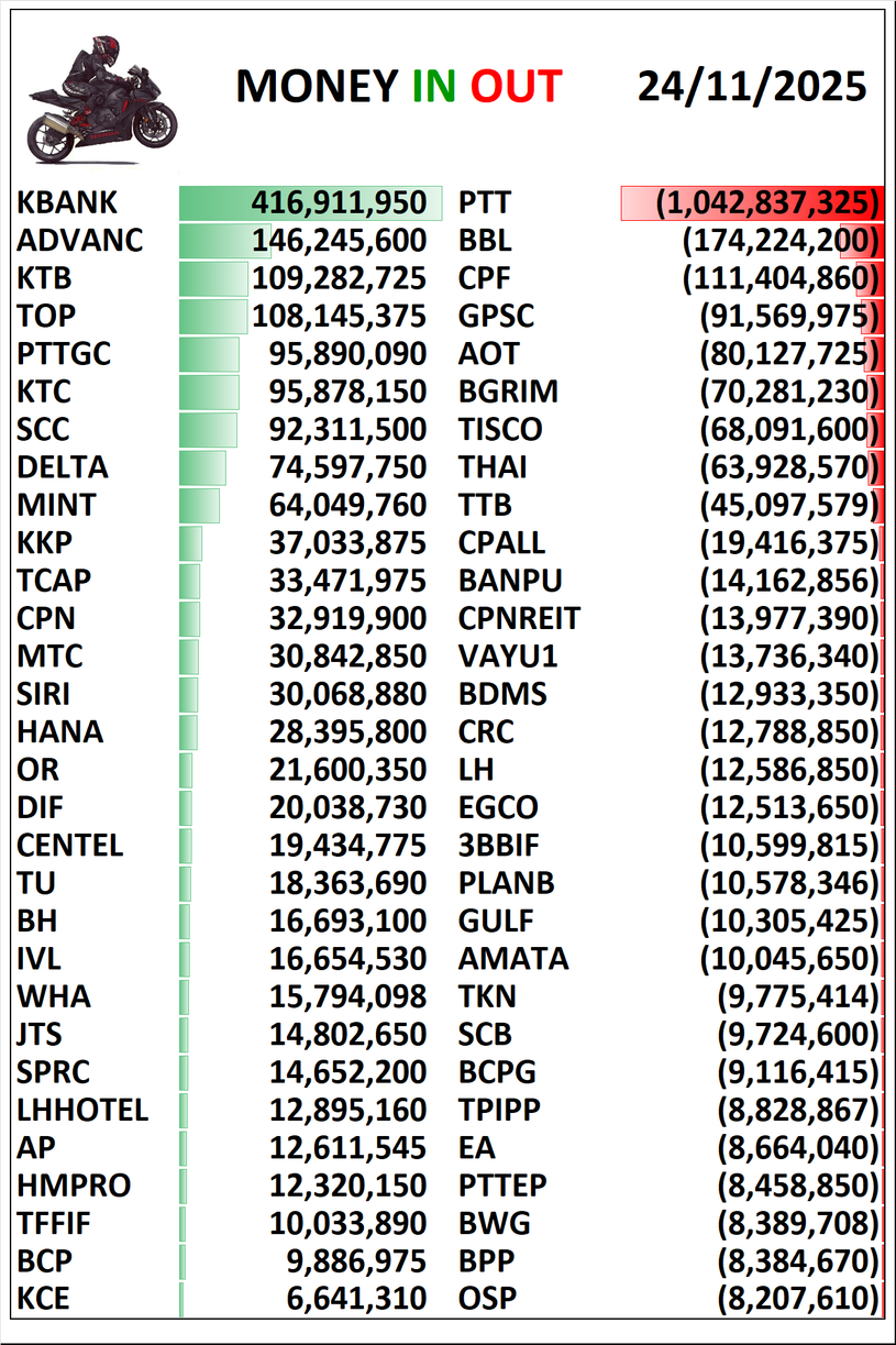💸MONEY 🟢IN 🔴OUT 1 , 5 , 10 วันย้อนหลัง 24/11/2025