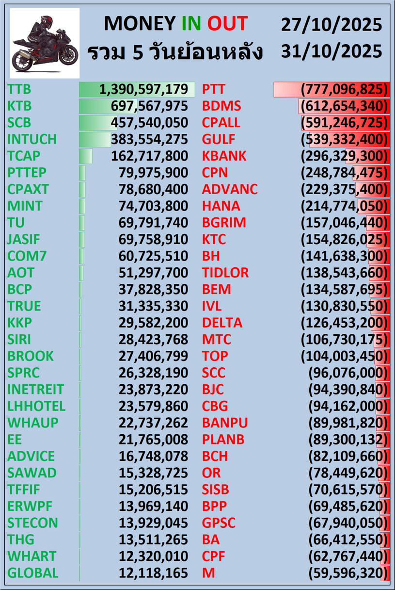 💸MONEY 🟢IN 🔴OUT 1 , 5 , 10 วันย้อนหลัง