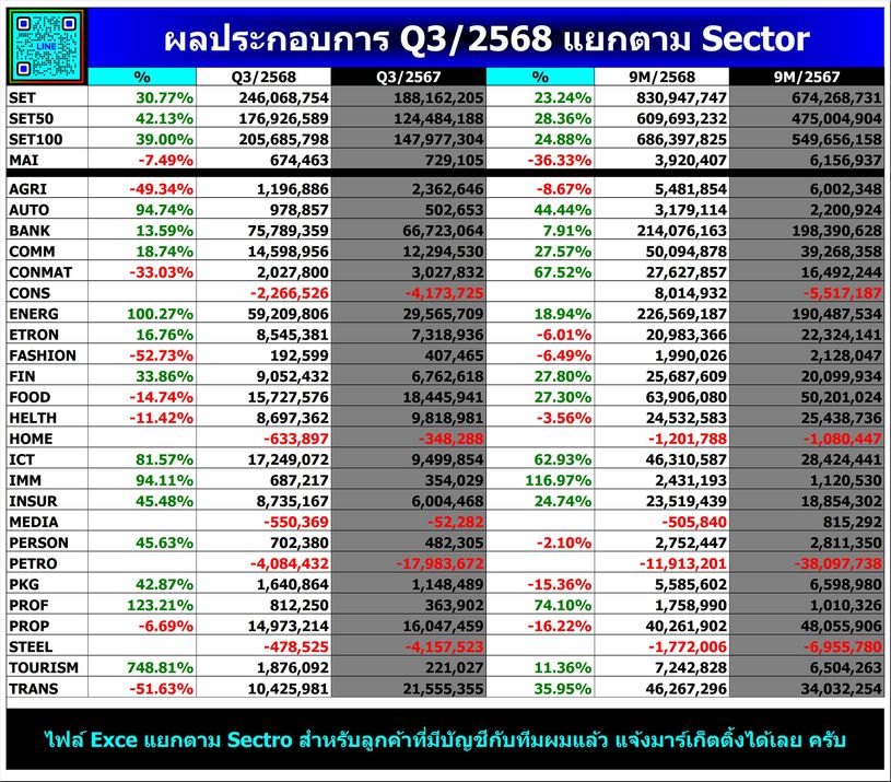 ⭐สรุป Q3/2568 แยกตาม Sector