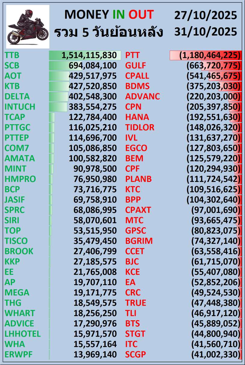 💸MONEY 🟢IN 🔴OUT 1 , 5 , 10 วันย้อนหลัง