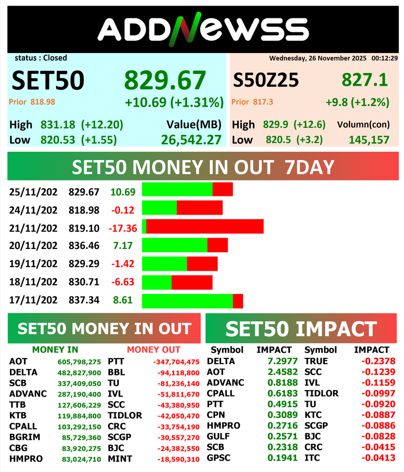 ADVANC : 🟢+4.00 ฿1,214,800,100