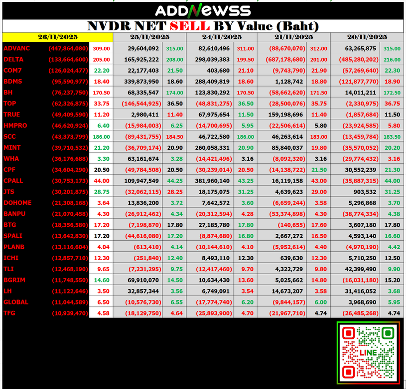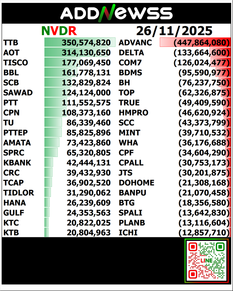 🟢🔴NVDR 📅 26/11/2025 📅 2025-11-27 08:15 ✎ administrator 🗇 NVDR 👍 - แชร์โพสต์นี้ 🟢🔴NVDR 📅 26/11/2025 “👀” ดู NVDR ย้อนหลังได้ที่ 👇👇 https://addnewss.news/post?catid=003