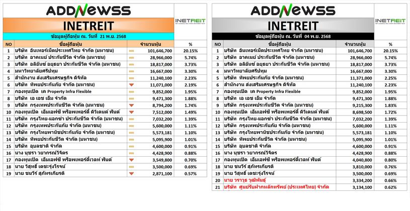 👨💼👩💼หุ้นที่มีรายงานผู้ถือหุ้นใหญ่เปลี่ยนแปลง พิมพ์ดูได้ที่ Line ครับ