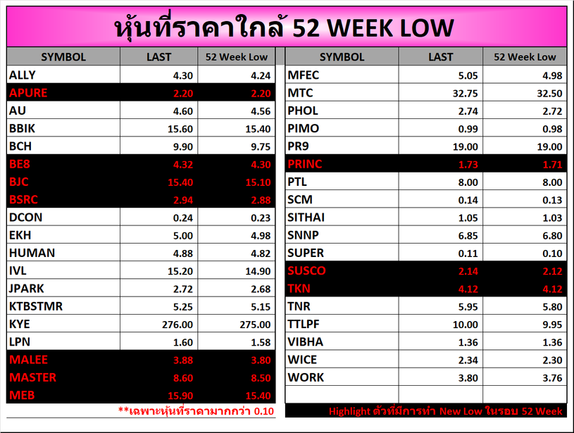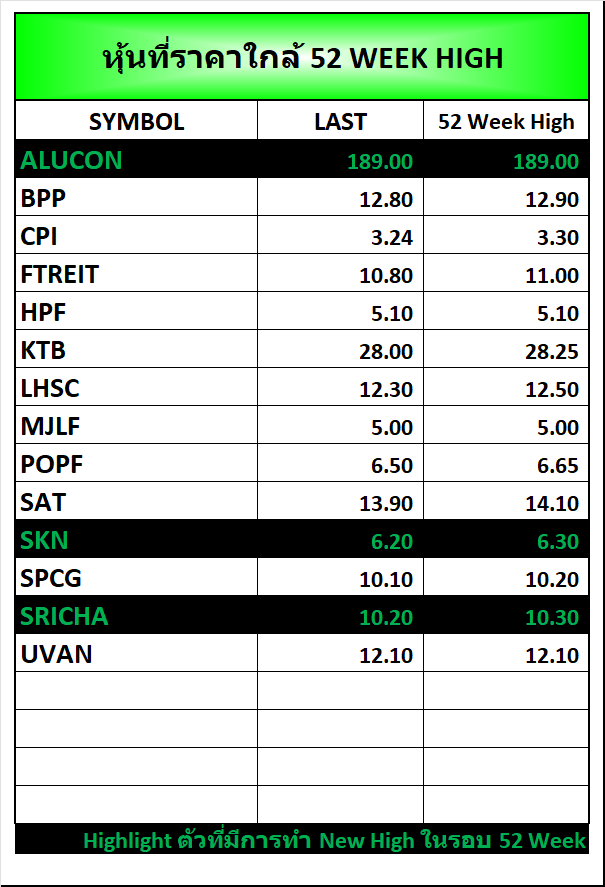 ⭐หุ้นที่ราคาใกล้ 52 Week 🟢High 🔴Low 📅27/11/2025