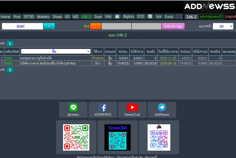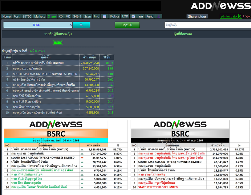 กองทุนรวมวายุภักษ์ หนึ่ง 🔴ขาย BSRC หมดพอร์ต 305,460,000 หุ้น 📅 2025-11-27 19:16 ✎ administrator 🗇 👨💼MD 👍 - แชร์โพสต์นี้ กองทุนรวมวายุภักษ์ หนึ่ง 🔴ขาย BSRC หมดพอร์ต 305,460,000 หุ้น รายงาน 246-2 วันรายงาน 📅27/11/2025 ดูผู้ถือหุ้นใหญ่ https://addnewss.news/shareholder?symbol=BSRC ดูรายงาน 246-2 https://addnewss.news/246-2?page=1&symbol=BSRC