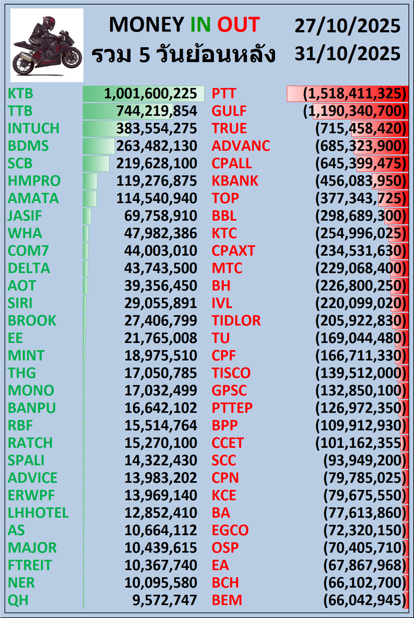 💸MONEY 🟢IN 🔴OUT 1 , 5 , 10 วันย้อนหลัง