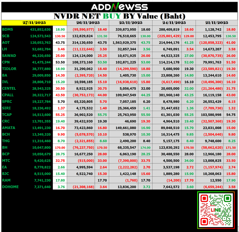 🟢🔴NVDR 📅 27/11/2025 📅 2025-11-28 07:37 ✎ administrator 🗇 NVDR 👍 - แชร์โพสต์นี้ 🟢🔴NVDR 📅 27/11/2025 “👀” ดู NVDR ย้อนหลังได้ที่ 👇👇 https://addnewss.news/post?catid=003