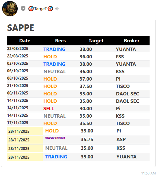 10.48 CMNT> SAPPE: แนะนำ "TRADING" ราคาเป้าหมาย 35.00 บาท - บล.หยวนต้า