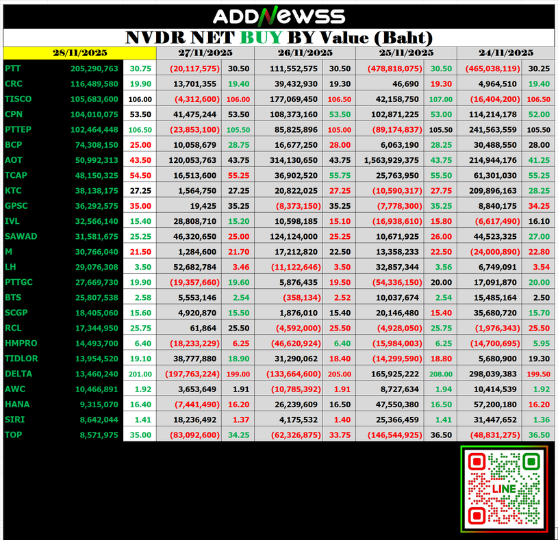🟢🔴NVDR 📅 28/11/2025 📅 2025-11-29 05:54 ✎ administrator 🗇 NVDR 👍 - แชร์โพสต์นี้ 🟢🔴NVDR 📅 28/11/2025 “👀” ดู NVDR ย้อนหลังได้ที่ 👇👇 https://addnewss.news/post?catid=003
