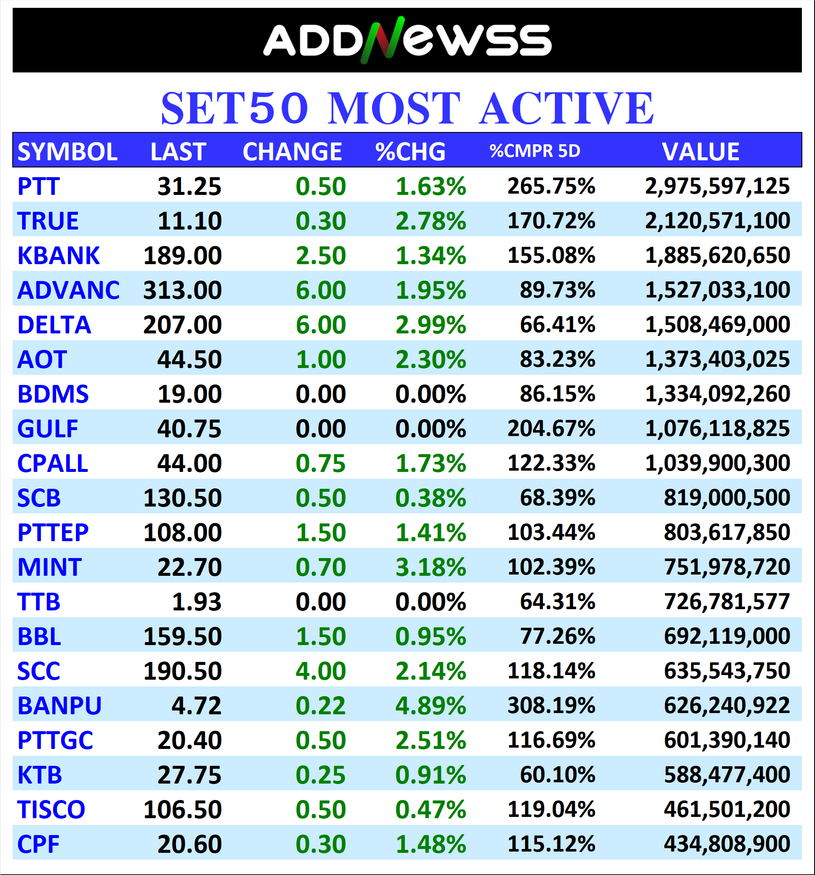 PTT : 🟢+0.50 ฿2,975,597,125