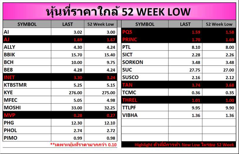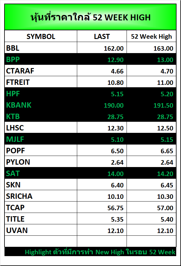 ⭐หุ้นที่ราคาใกล้ 52 Week 🟢High 🔴Low 📅02/12/2025