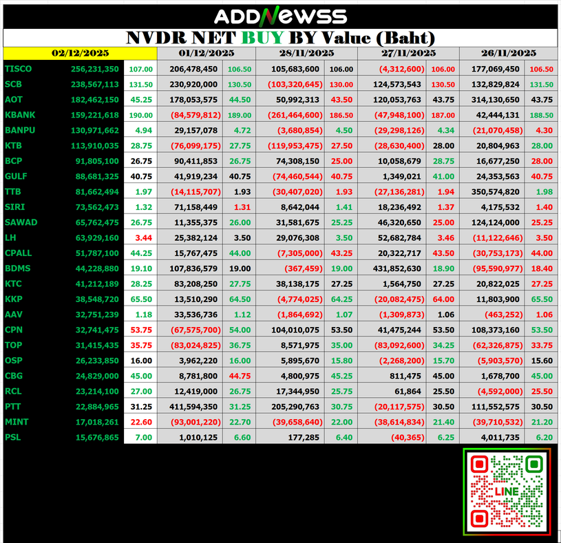 🟢🔴NVDR 📅 02/12/2025 📅 2025-12-03 08:11 ✎ administrator 🗇 NVDR 👍 - แชร์โพสต์นี้ 🟢🔴NVDR 📅 02/12/2025 “👀” ดู NVDR ย้อนหลังได้ที่ 👇👇 https://addnewss.news/post?catid=003