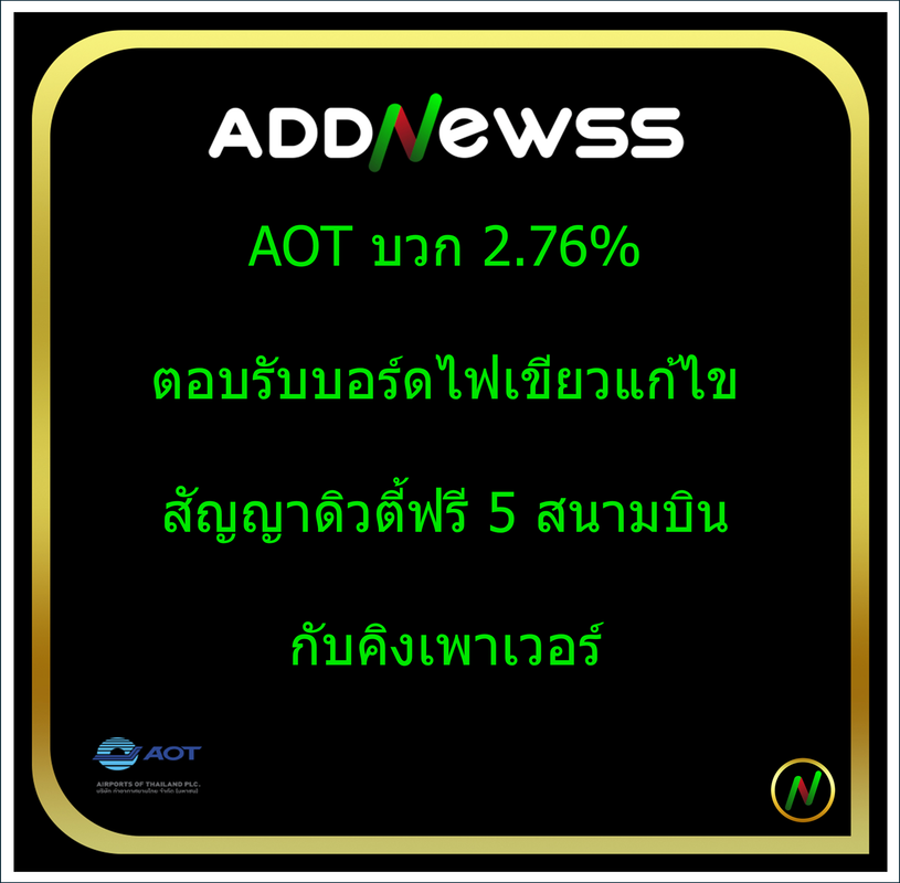 IQ >AOT บวก 2.76% ตอบรับบอร์ดไฟเขียวแก้ไขสัญญาดิวตี้ฟรี 5 สนามบินกับคิงเพาเวอร์
