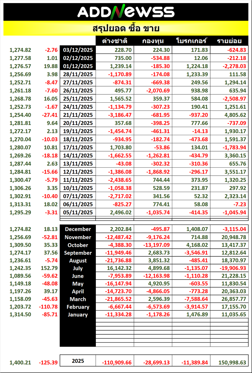 🔥🔥สรุปยอด 🟢ซื้อ🟢🔴 ขาย🔴 📅03/12/2025