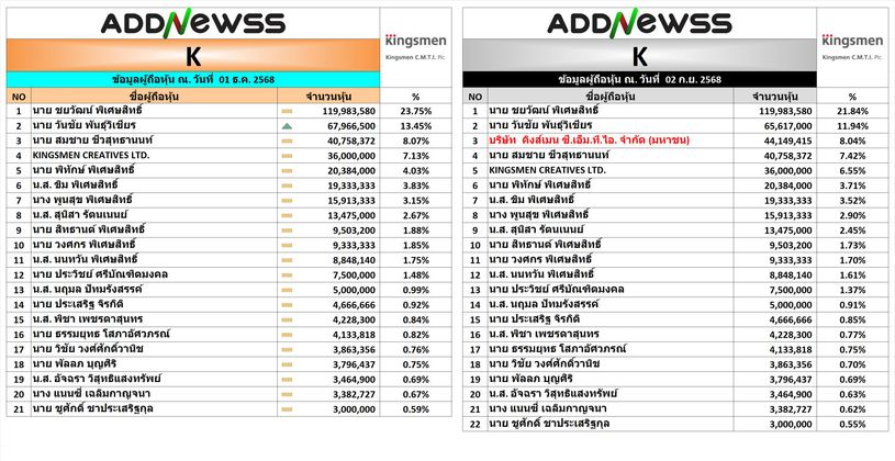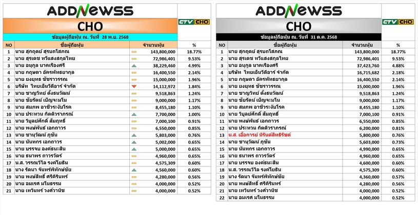 👨💼👩💼หุ้นที่มีรายงานผู้ถือหุ้นใหญ่เปลี่ยนแปลง พิมพ์ดูได้ที่ Line ครับ