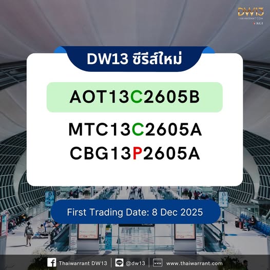 พบกับ DW13 อ้างอิงหุ้น AOT Call ตัวใหม่