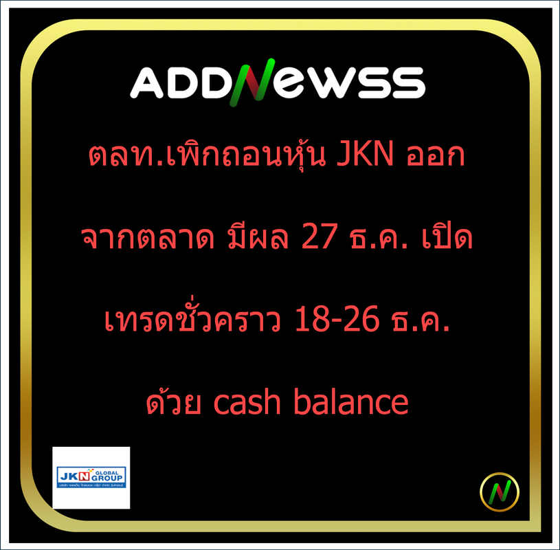 IQ > ตลท.เพิกถอนหุ้น JKN ออกจากตลาด มีผล 27 ธ.ค. เปิดเทรดชั่วคราว 18-26 ธ.ค.ด้วย cash balance
