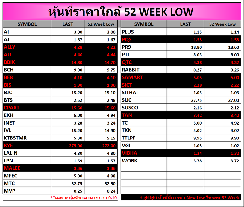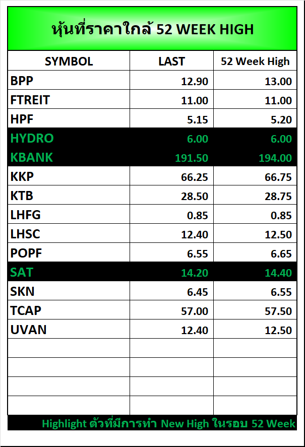 ⭐หุ้นที่ราคาใกล้ 52 Week 🟢High 🔴Low 📅08/12/2025