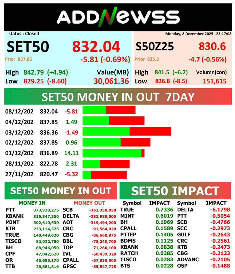 DELTA : 🔻-7.00 ฿2,433,066,100