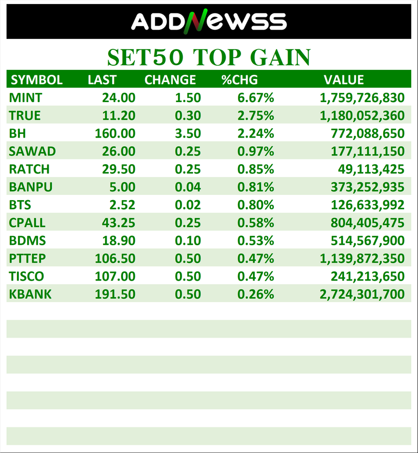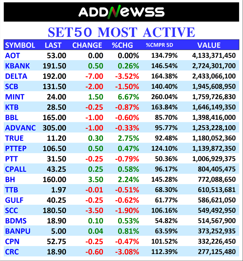 KBANK : 🟢+0.50 ฿2,724,301,700
