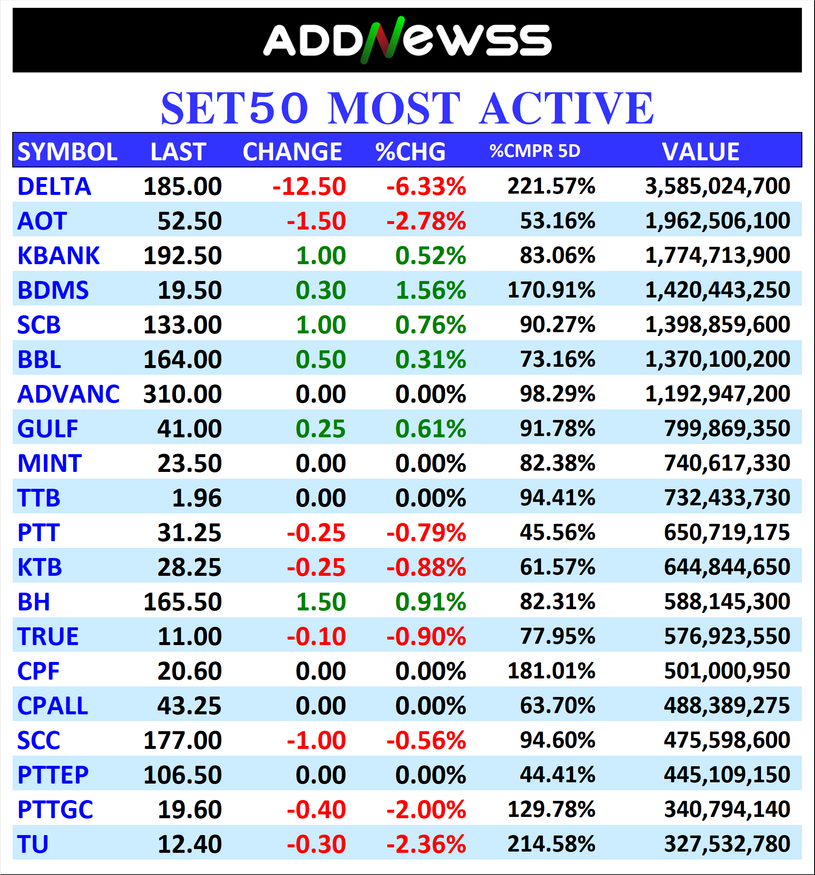 DELTA : 🔻-12.50 ฿3,585,024,700