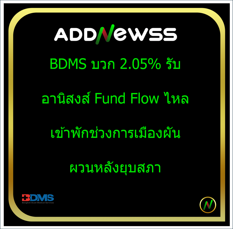 IQ > -BDMS บวก 2.05% รับอานิสงส์ Fund Flow ไหลเข้าพักช่วงการเมืองผันผวนหลังยุบสภา