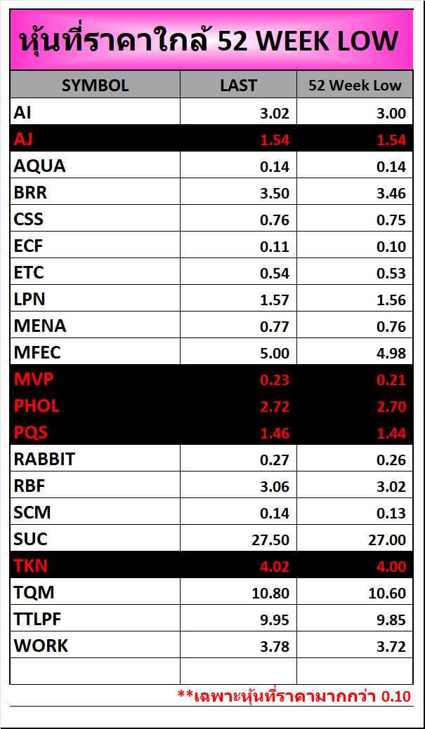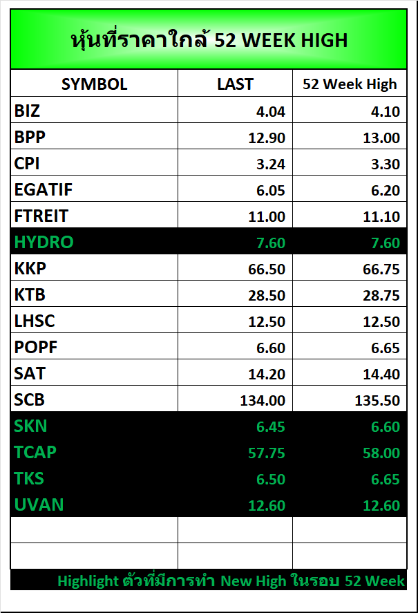 ⭐หุ้นที่ราคาใกล้ 52 Week 🟢High 🔴Low 📅12/12/2025