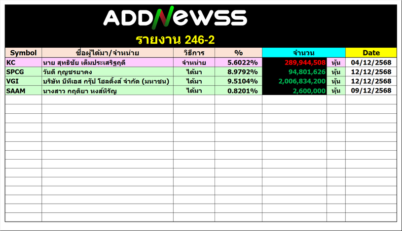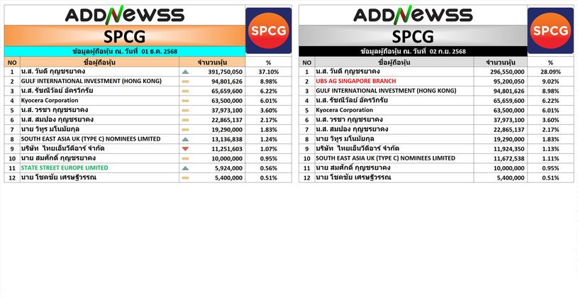 วันดี กุญชรยาคง 🟢ได้ SPCG มาเพิ่ม 8.9792% รวมถือเป็น 46.0841% 📅 2025-12-15 18:48 ✎ administrator 🗇 👨💼MD 👍 - แชร์โพสต์นี้ วันดี กุญชรยาคง 🟢ได้ SPCG มาเพิ่ม 8.9792% รวมถือเป็น 46.0841% รายงาน 246-2 วันรายงาน 📅15/12/2025 ดูผู้ถือหุ้นใหญ่ https://addnewss.news/shareholder?symbol=SPCG ดูรายงาน 246-2 https://addnewss.news/246-2?page=1&symbol=SPCG
