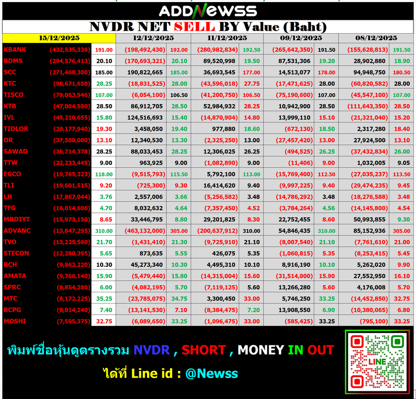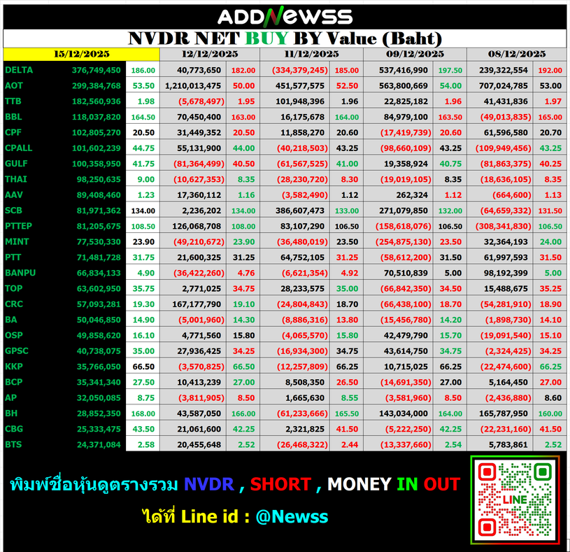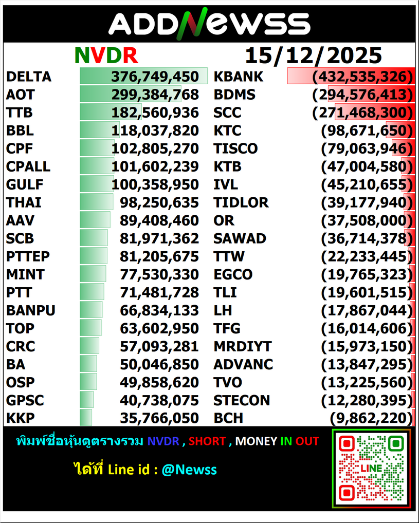 🟢🔴NVDR 📅 15/12/2025 📅 2025-12-16 08:16 ✎ administrator 🗇 NVDR 👍 - แชร์โพสต์นี้ 🟢🔴NVDR 📅 15/12/2025 “👀” ดู NVDR ย้อนหลังได้ที่ 👇👇 https://addnewss.news/post?catid=003 ✨📊 พิมพ์ชื่อหุ้น เพื่อดูตารางรวม 💸 Money 🟢In / 🔴Out 📈 NVDR 📉 Short Sale 👉ดูได้ที่ Line id : @Newss 🔗 https://line.me/R/ti/p/@newss