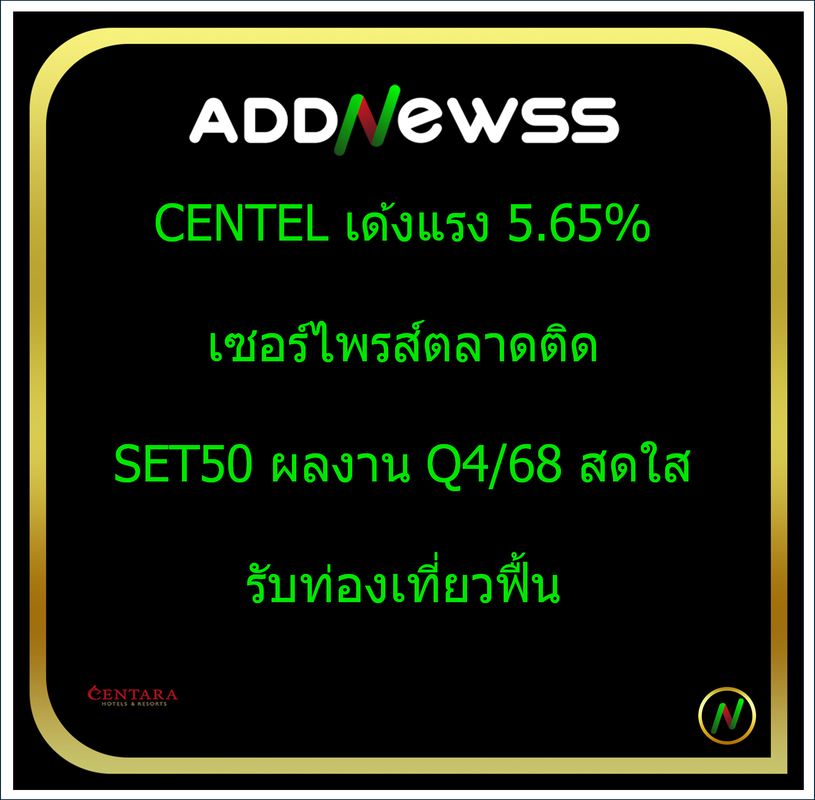 IQ > HILITE: CENTEL เด้งแรง 5.65% เซอร์ไพรส์ตลาดติด SET50 ผลงาน Q4/68 สดใสรับท่องเที่ยวฟื้น