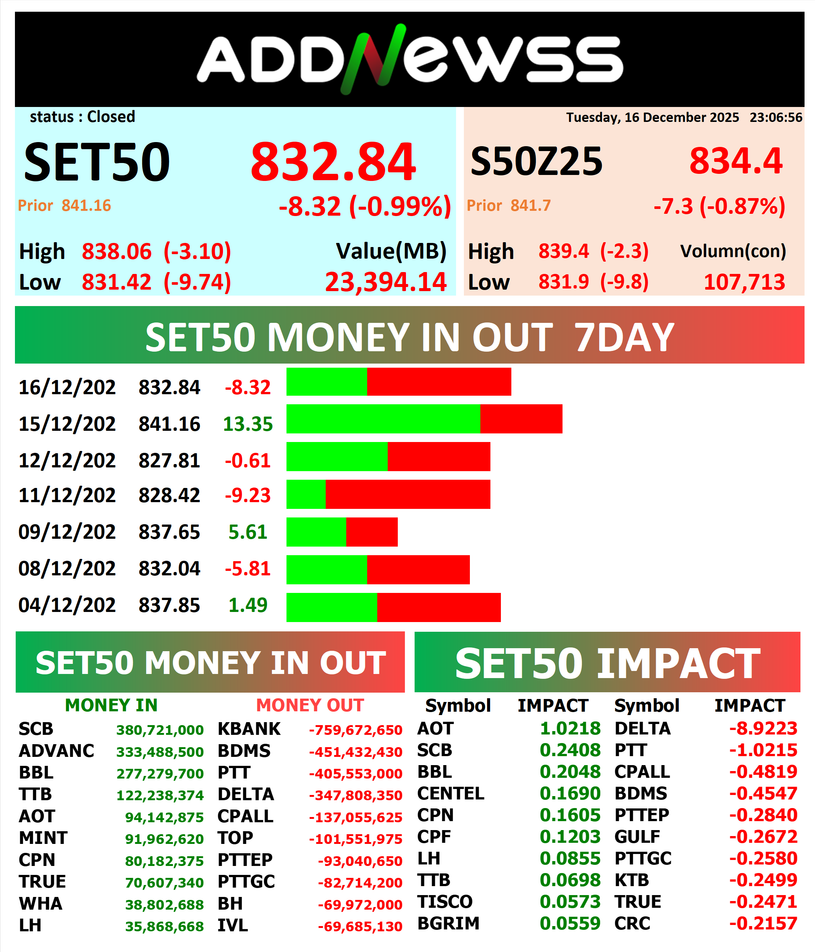 KBANK : 🔻-0.50 ฿1,831,007,250
