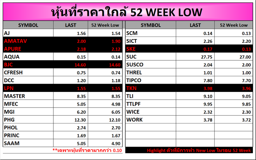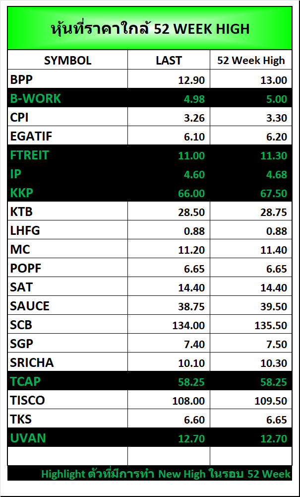 ⭐หุ้นที่ราคาใกล้ 52 Week 🟢High 🔴Low 📅17/12/2025