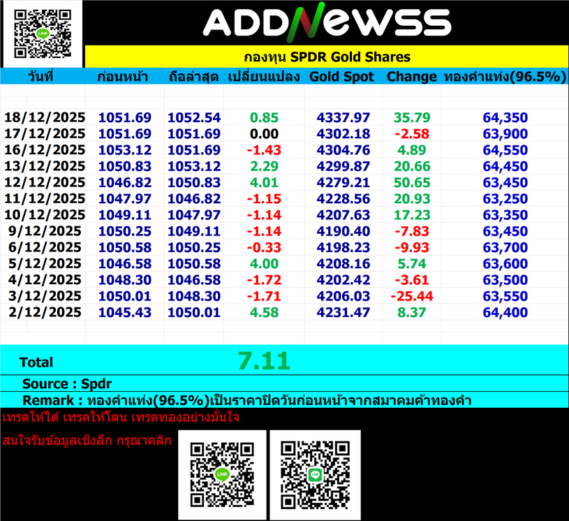 ยอดสะสม Spdr ประจำวันที่ 18 ธันวาคม 2025 📅 2025-12-18 08:12 ✎ bom999 🗇 Gold 👍 - แชร์โพสต์นี้ ยอดสะสม Spdr ย้อนหลังประจำเดือนพฤศจิกายน 2025 https://addnewss.news/post/692a49e6475a669f8e0499a4