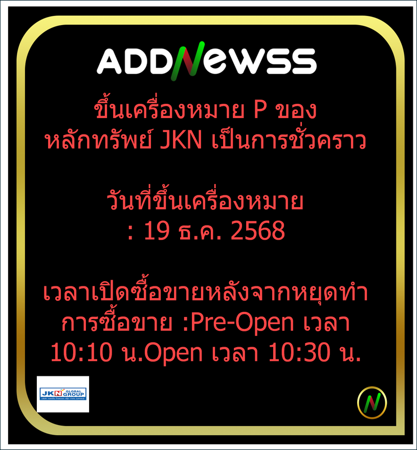 เรื่อง : ตลาดหลักทรัพย์ขึ้นเครื่องหมาย P ของหลักทรัพย์ JKN เป็นการชั่วคราว เนื่องจาก Auto Pause