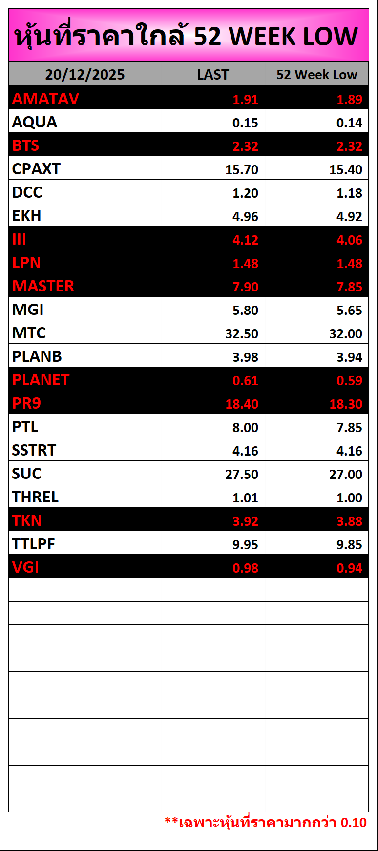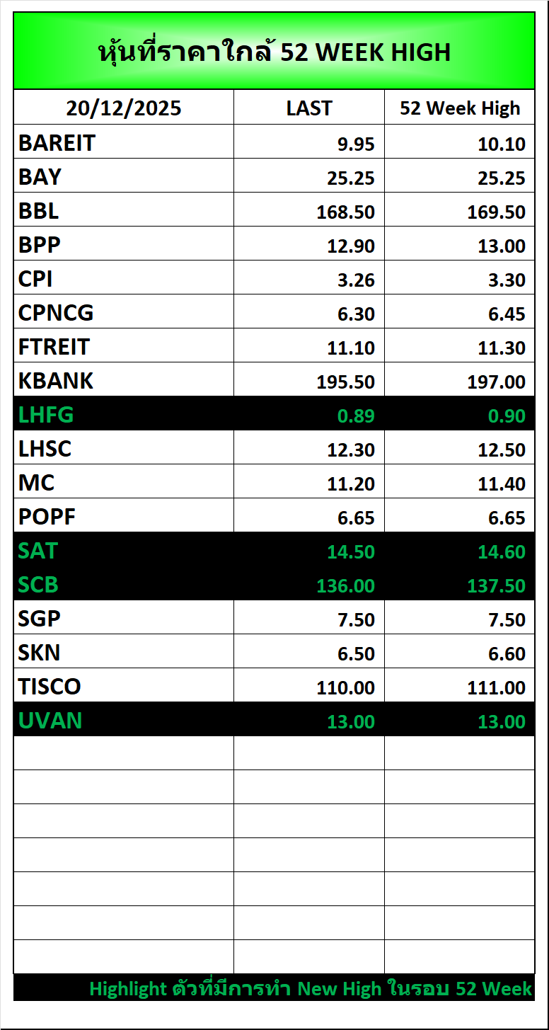 ⭐🔥หุ้นที่ราคาใกล้ ALL TIME 🟢High 🔴Low 📅19/12/2025