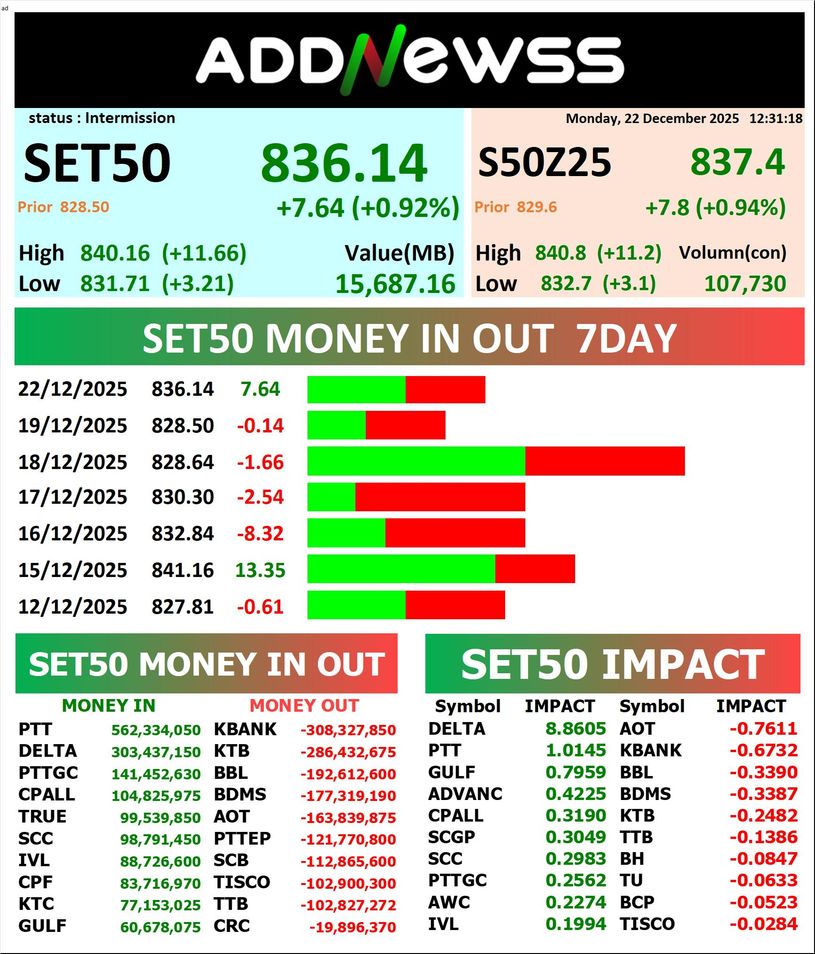 PTT : 🟢+0.50 ฿842,292,825